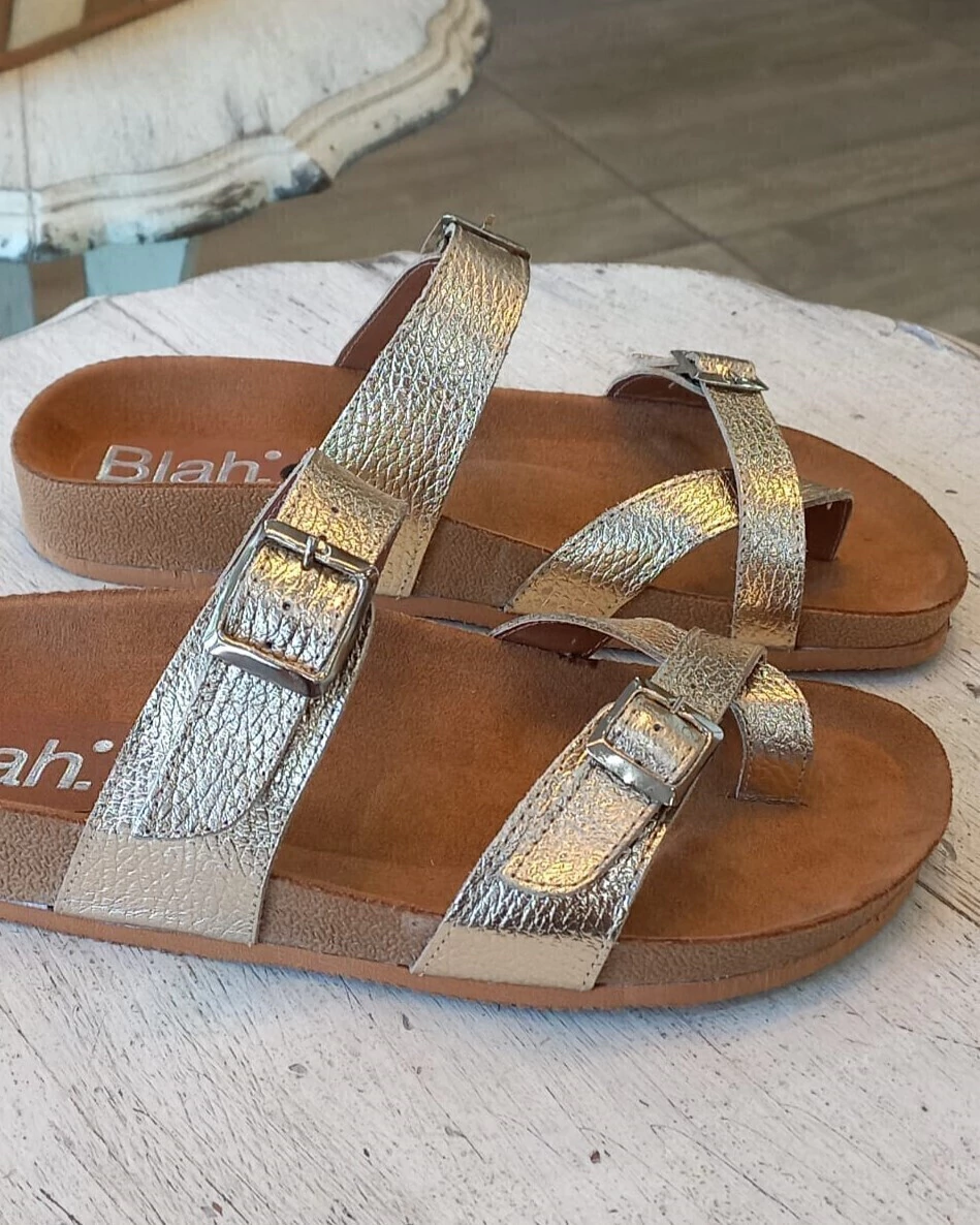 Descubrí la sandalia Camila, diseñada para realzar todos tus outfits de verano con su sofisticado color platino. Su modelo único incluye un diseño pensado para colocar el dedo, otorgando un soporte natural y cómodo durante todo el día.