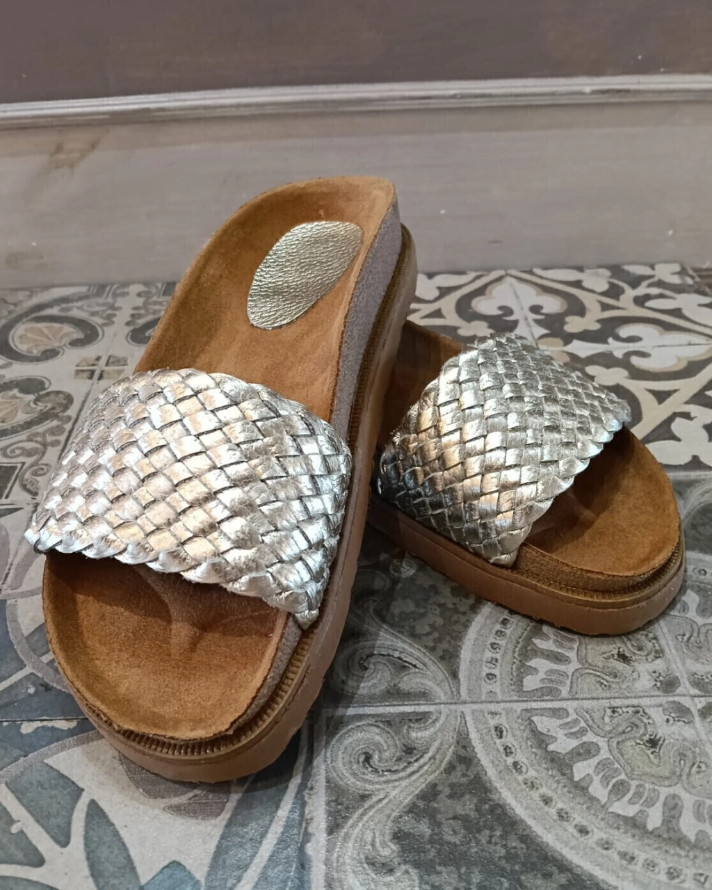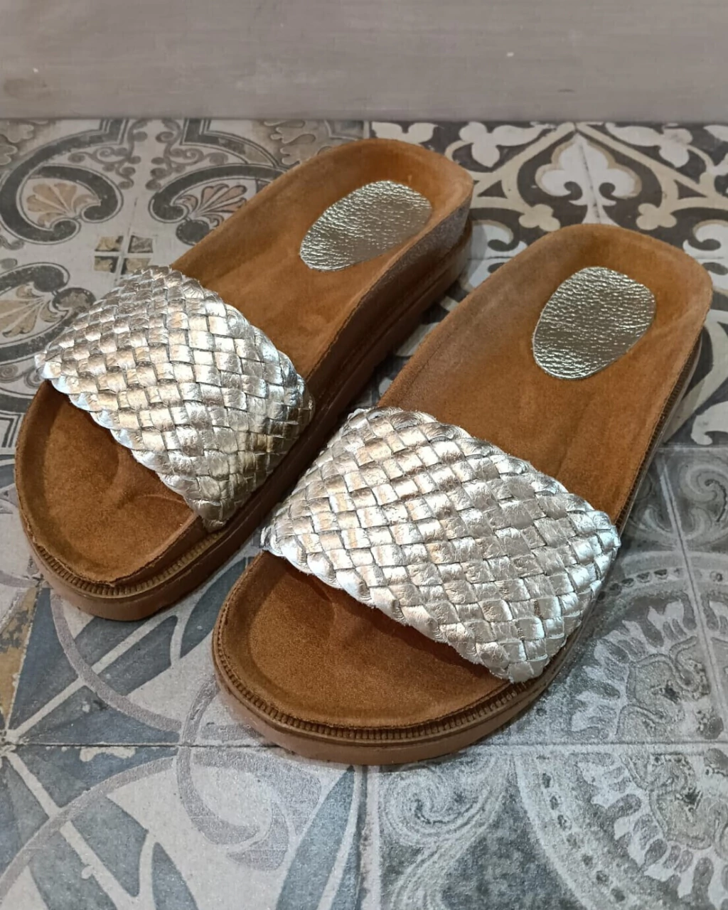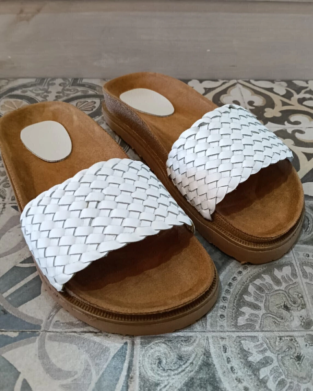 Descubrí la elegancia relajada de nuestra sandalia baja con diseño de una tira trenzada que aporta un toque artesanal y sofisticado a tus outfits. Pensada para acompañarte todo el día, su plantilla termoformada ofrece un soporte ergonómico que se adapta perfectamente a la forma de tu pie, brindando una comodidad insuperable.